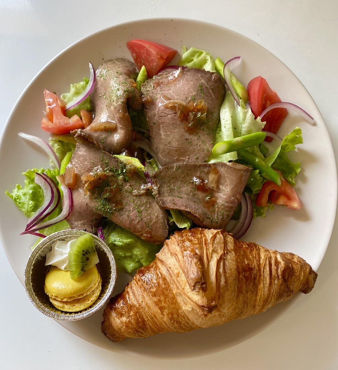 Step inside Mimistand, and you're embraced by the inviting aroma of freshly baked goods. The café specializes in a unique combination of café classics and later-in-the-day delights that reflect the essence of Japanese comfort food. The standout dish is undoubtedly the トマトミートパスタ, a charming mélange of flavors that dance upon your palate, perfectly paired with their flaky, buttery クロワッサン. Alongside, indulge in the 蒸し鶏サラダ, an expertly crafted salad that even the most vegetable-averse will find hard to resist, thanks to its sweet touch of Caesar dressing. At only JP¥1,500, this lunch set also comes with a mini dessert and inclusive drink bar, ensuring a satisfying and refreshing meal.
